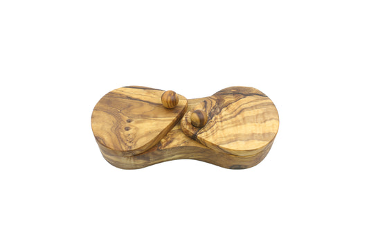Salz- und Gewürzdose aus Olivenholz mit zwei Fächern