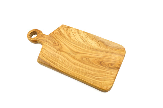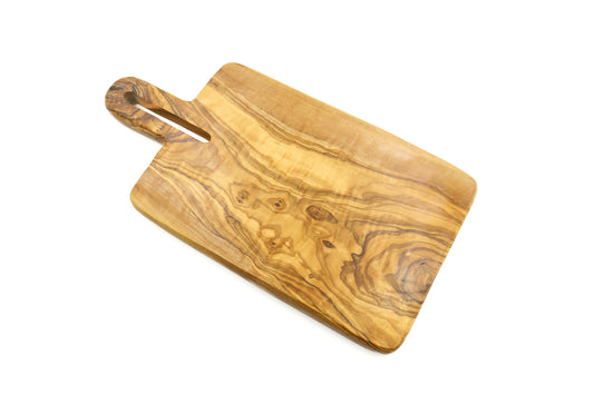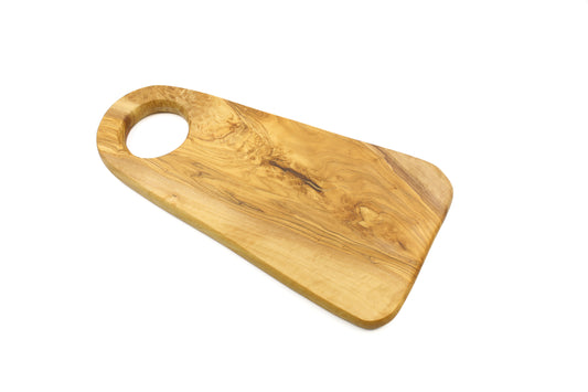Schneidebrett aus Olivenholz mit Handgriff, organische Form