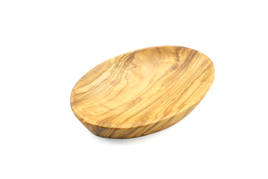 Bol ovale avec cueilleur d'olives fait à la main en bois d'olivier
